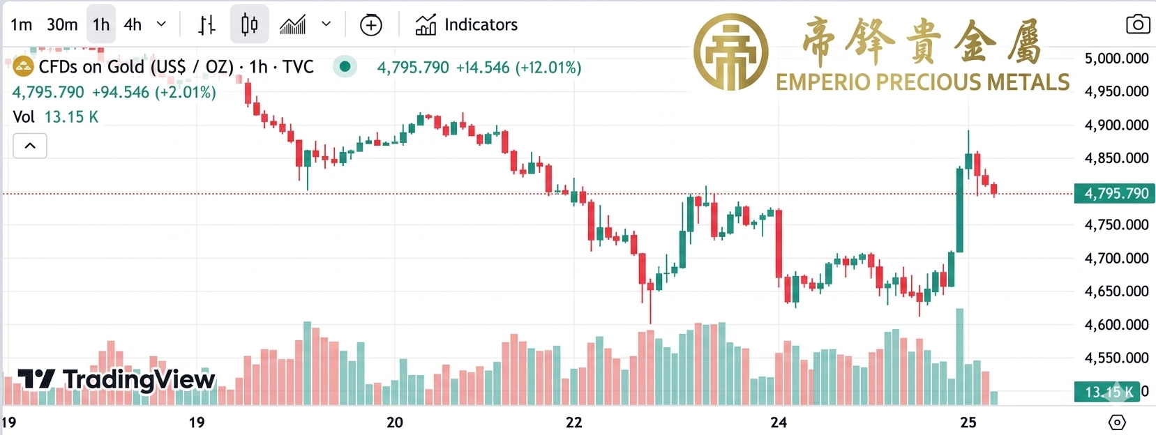 技術層面上,金價跳空高開,打破幾日震盪調整局面,如能持續企穩在4800附近,金價短線有繼續上漲空間