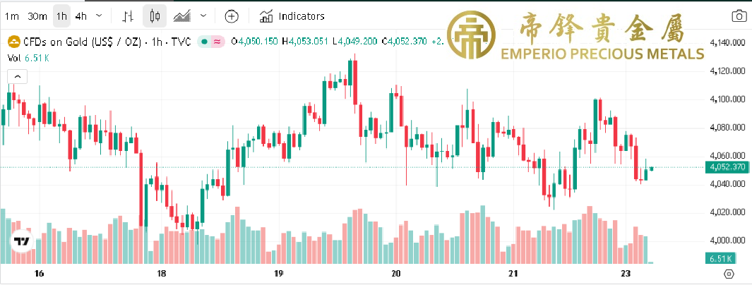 週五金價繼續震蕩,早段開市先下滑,最低跌至4022,中段成功由低位回升,尾段最高升至4101,但收市前未能企穩高位,再度回落。上週五紐約聯儲銀行總裁John Williams表示,短期仍有一定減息空間,作為聯儲局第三把手,鴿派言論具有重要指標作用,而根據利率期貨顯示,最新12月減息機率已回升至接近7成,但金價整體仍維持震蕩