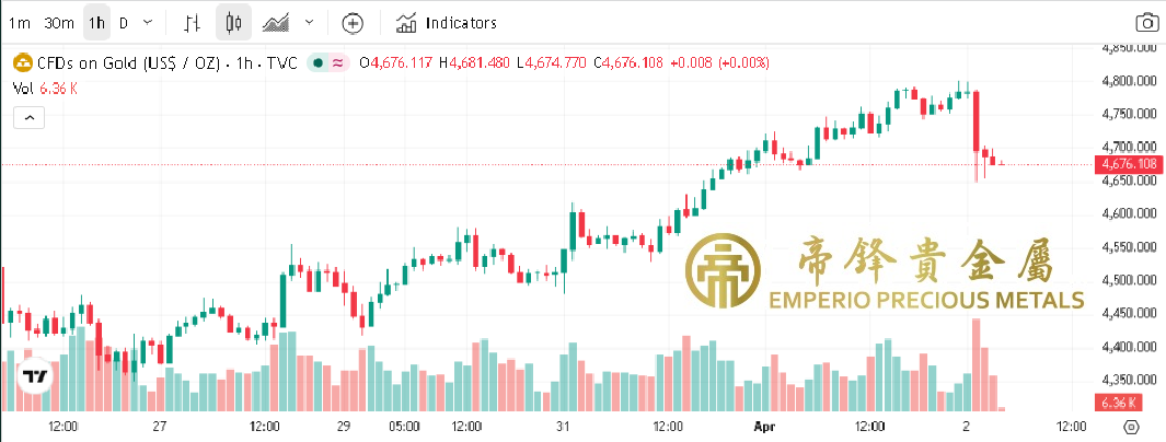 週三金價持續上揚,早段開市即見全日最低4661,之後延續前一日升勢,中段調整過後再度上漲,尾段最高升至4793,收市前高位震蕩。美國總統特朗普今朝早發表演說,表示在未來兩三個星期將會對伊朗發動重大打擊,再次打退市場樂觀情緒,金價由近日高位大幅下挫