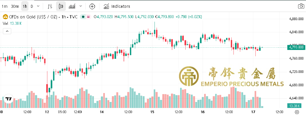 週四金價窄幅波動,早段開市先上漲,最高升至4838,中段小幅回落,尾段下滑至最低4772,收市前有所回穩。美國總統特朗普表示,美伊雙方最快在週末再一次在巴基斯坦談判,並且不排除迅速達成協議,總括而言,雙方再爆發大規模戰爭機會似乎較微,金價處於近日高位附近震蕩