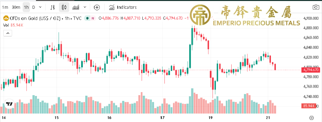 週一金價先跌後升,早段開市跳空低開,最低一度跌至4736,之後由低位回升,中段窄幅波動,尾段升至最高4827,收市前企穩高位。美伊雙方會否繼續談判仍然在影響市場,據多方面消息報道,伊朗似乎會參與在巴基斯坦的第二輪談判,如果有好消息公佈,金價可能出現一定程度利好