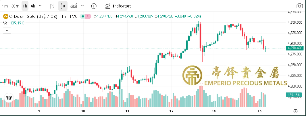 週一金價先升後跌,早段開市即向上攀升,中段升至最高4350,之後高位震蕩,尾段由高位下挫,最低跌至4285,收市前有所回穩。今日美國勞工統計局將一次過公佈10月,11月非農數據,如果數據理想,對於聯儲局明年初繼續減息將會有堅實基礎,金價則有望再次挑戰歷史高點